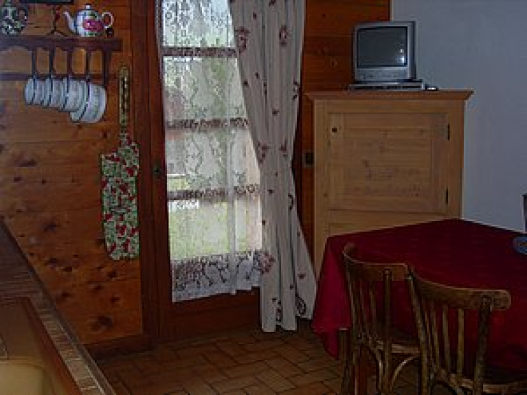 Hübsche kleine Wohnung von 30 m², die sich auf der Gartenebene des Chalets befindet. Es bietet Platz für 5 Personen und öffnet sich zu einem nach Süden ausgerichteten Gartenzimmer mit Blick auf den Crêt du Midi (auf den Pisten).