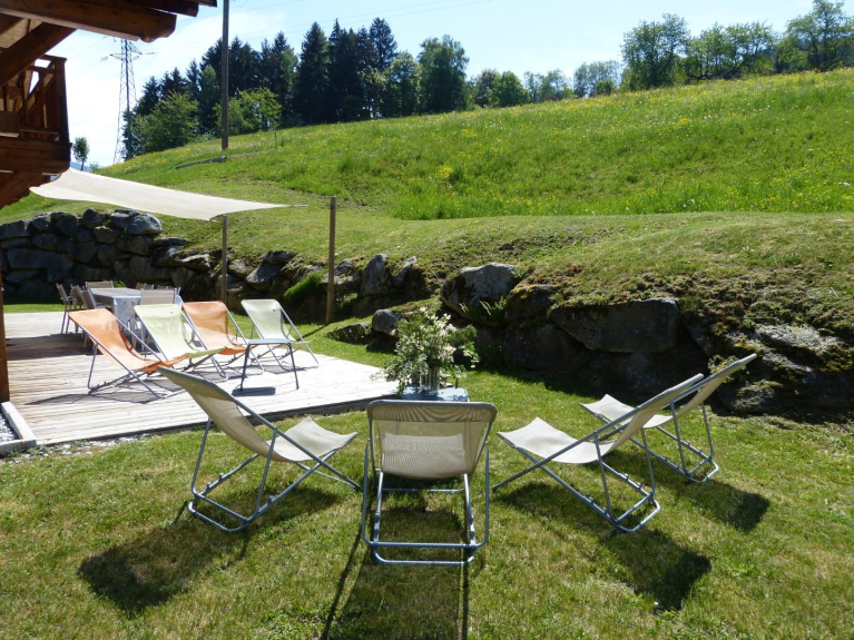 Traditionelles Chalet, sehr komfortabel, private Holzterrasse, 800m2 Land um, Ruhe gewährleistet.