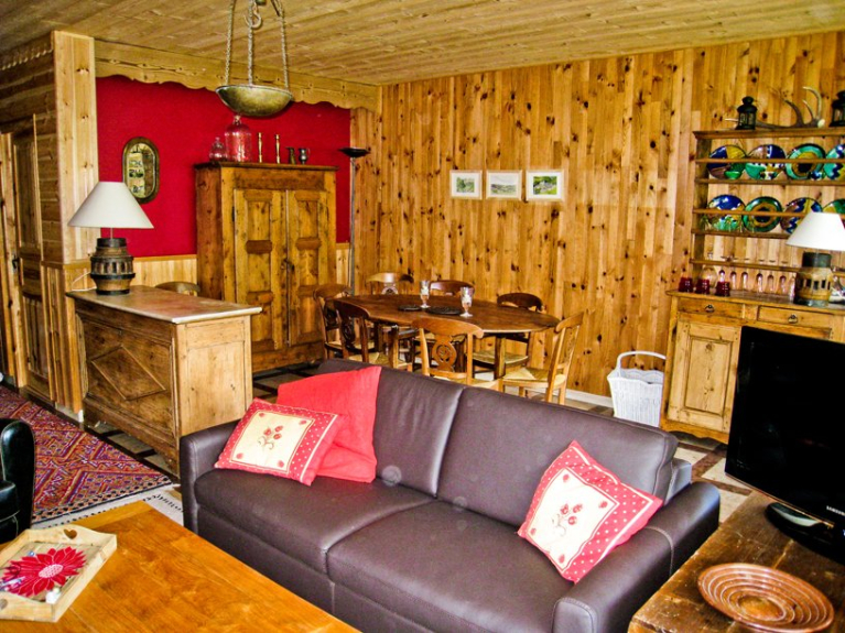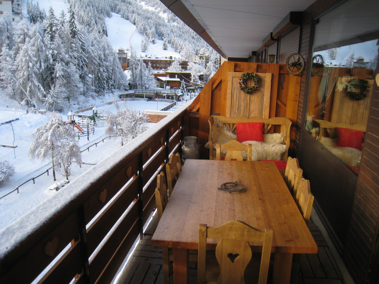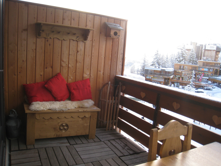 appartement de charme tout en bois comme dans un chalet, situé dans la galerie commerciale de praloup à proximité immediate des remontées mecanique et de tout commerce et services