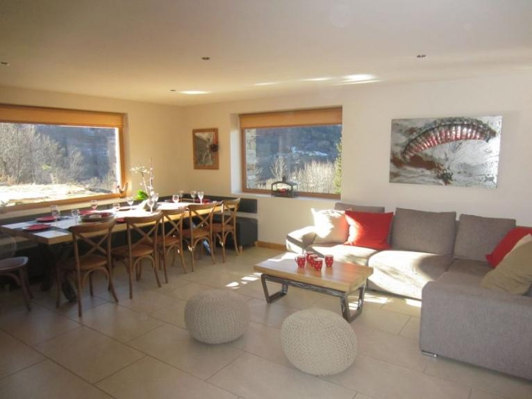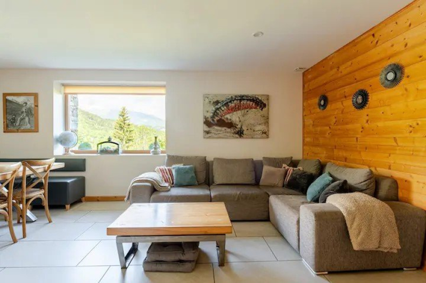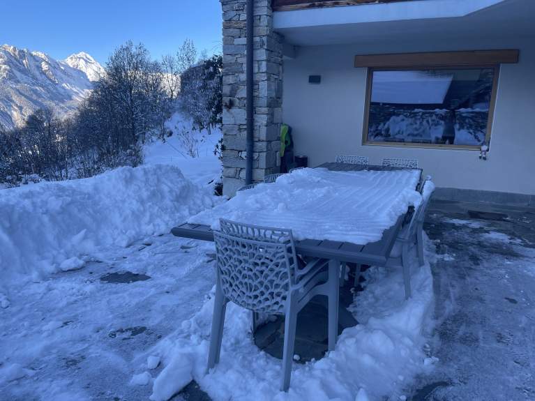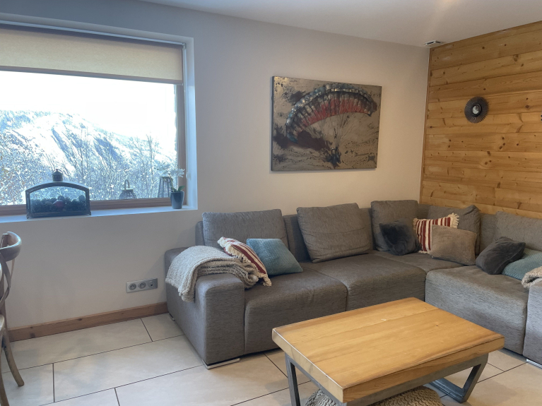 Sehr geräumig im Erdgeschoss eines typischen savoyischen Chalets für 12 Personen; und sehr komfortabel mit einer Sauna und einer schönen Terrasse mit einem atemberaubenden Blick auf die Berge.