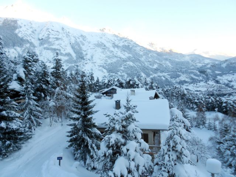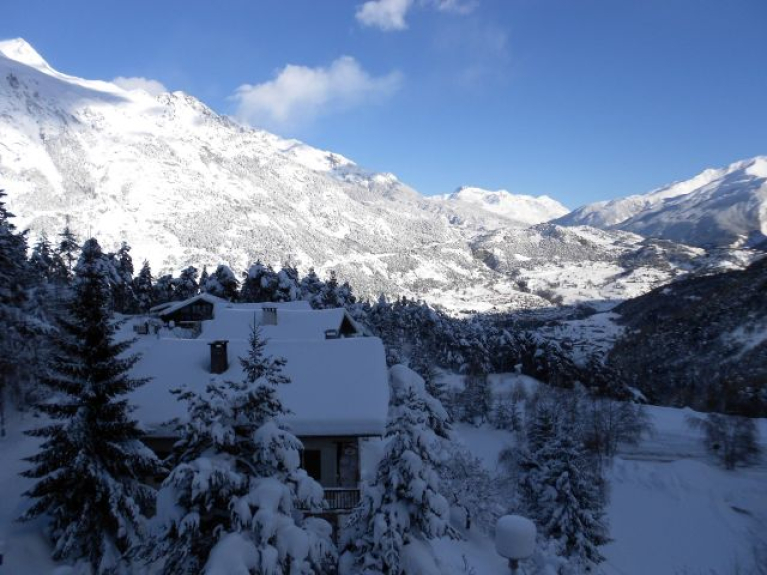 Vom Wohnzimmer aus hat man einen herrlichen Blick auf das Tal und die Berge des Vanoise-Parks.