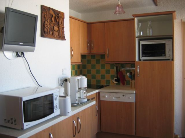 Ausgestattete Küche: Geschirrspüler, Kühlschrank, Cerankochfeld, Backofen, Mikrowelle, Kaffeemaschine, Wasserkocher, Toaster, Mixer, Schnellkochtopf, Staubsauger.