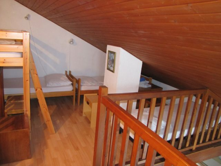Schlafgelegenheit: 1 Doppelbett im Schlafzimmer, 4 Einzelbetten im Zwischengeschoss.