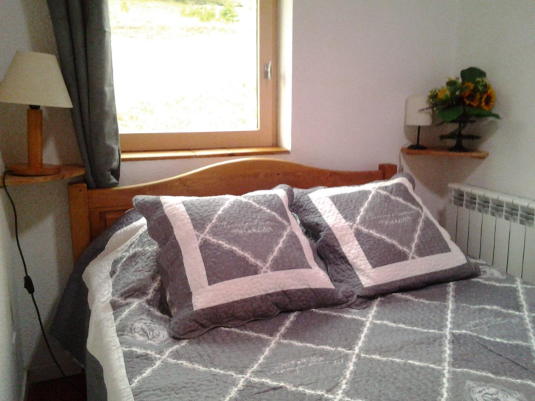 ein Schlafzimmer mit einem Doppelbett , ein kleines Schlafzimmer mit einem Etagenbett , im Wohnzimmer ein Sofa .