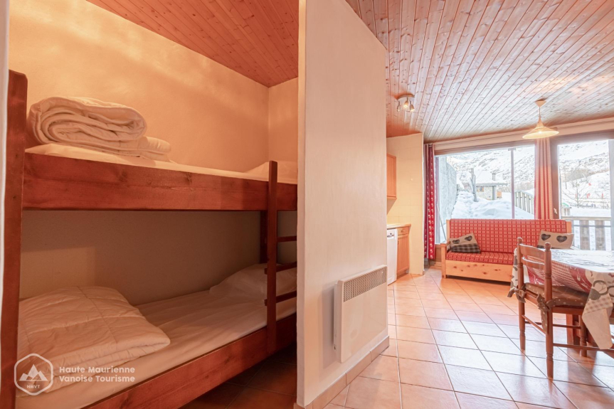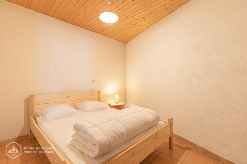 Wohnung von 53 m2 , befindet sich im 2. Stock des Chalets, nach Osten mit Terrasse, 2 Schlafzimmer mit je 1 Doppelbett, Alkoven im Wohnzimmer mit 1 Etagenbett, große voll ausgestattete Wohnküche, Sofa und Sessel, Kamin, Bad mit Badewanne und Dusche, separates WC, Terrasse zum Essen im Freien im Sommer,