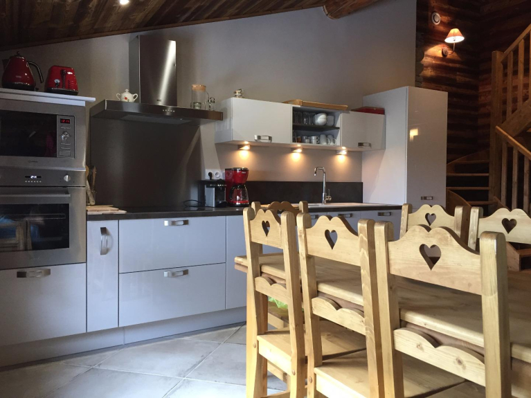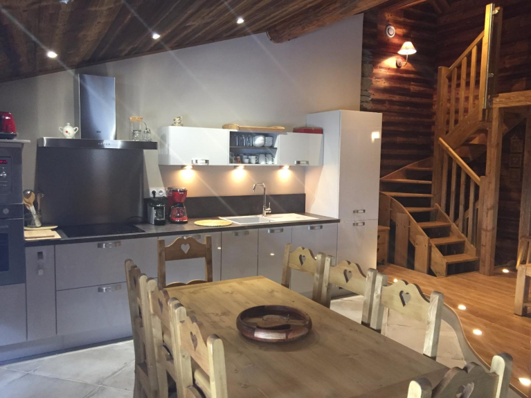 Skischrank, Autoabstellplatz vor dem Chalet. Geschäfte in der Nähe, Fußgängerzone. Authentisches Chalet, vollständig im savoyardischen Stil renoviert.