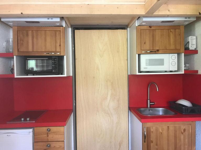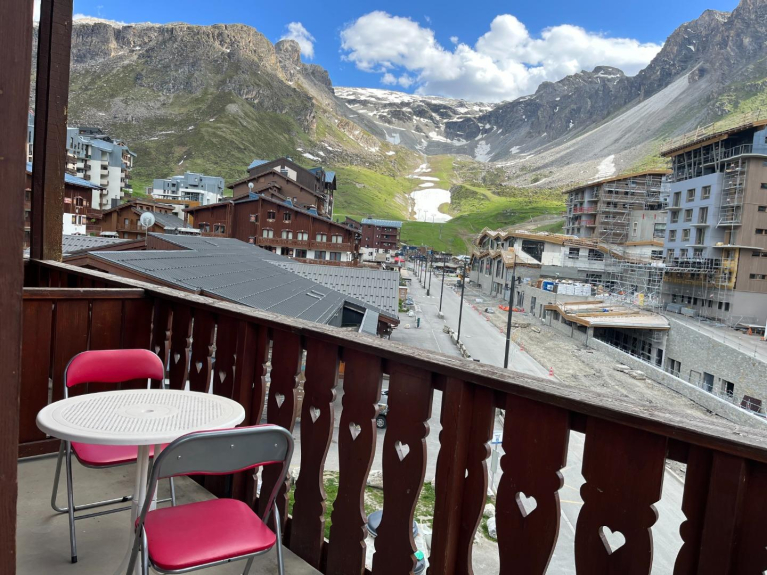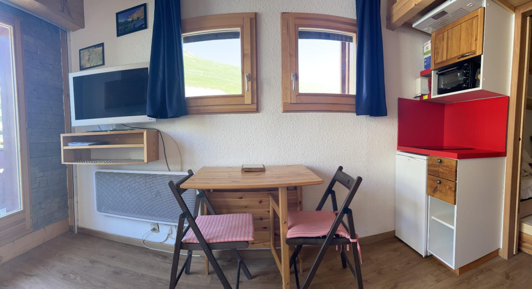 Komplett renoviertes Studio mit Mezzanine in Tignes Val Claret, Studio im 3. Stock mit Aufzug in einem sicheren Chalet mit Zugangscode, Chalet Club 3, 250 m von den Pisten entfernt. Eckbalkon auf zwei Seiten mit Blick auf die Berge. Ausgestattete Küche, Induktionskochfeld, Minibackofen, Mikrowelle, Geschirr, 2 Abzugshauben ... , Wohnzimmer mit Farbfernseher, 1 Einzelbett im Eingangsbereich und zahlreichen Regalen, Mezzanine mit Doppelbett und Platz für ein Sofa mit Ausziehbetten, die in ein Doppelbett umgewandelt werden können, Bad mit Duschkabine, Skiraum und Doppelbalkon, auf dem die Mountainbikes sicher aufbewahrt werden können.