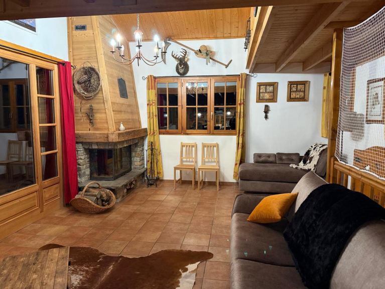 Die Ausstattung des Chalets: Geschirrspüler, Kühlschrank und Gefrierschrank, 4 Cerankochfelder, elektrischer Backofen, Dunstabzugshaube, Mikrowelle, Kaffeemaschine, Nespresso, Wasserkocher, Toaster, Küchenmaschine, elektrischer Mixer, Suppenmixer, elektrisches Messer, 2 Raclette-Sets, 2 Fondue-Sets, Geschirr. OLED-TV, Blu-ray/DVD/USB-Player, Hifi, Wifi-Breitbandinternet über Glasfaser. Waschmaschine und Trockner. Essstuhl für Kinder. Kinderreisebett, Babybadewanne, Wickeltisch. Trocknen von Skischuhen. Kamin mit verschiebbarem Einsatz. Gesellschaftsspiele, Bücher und Spiele für Kinder.