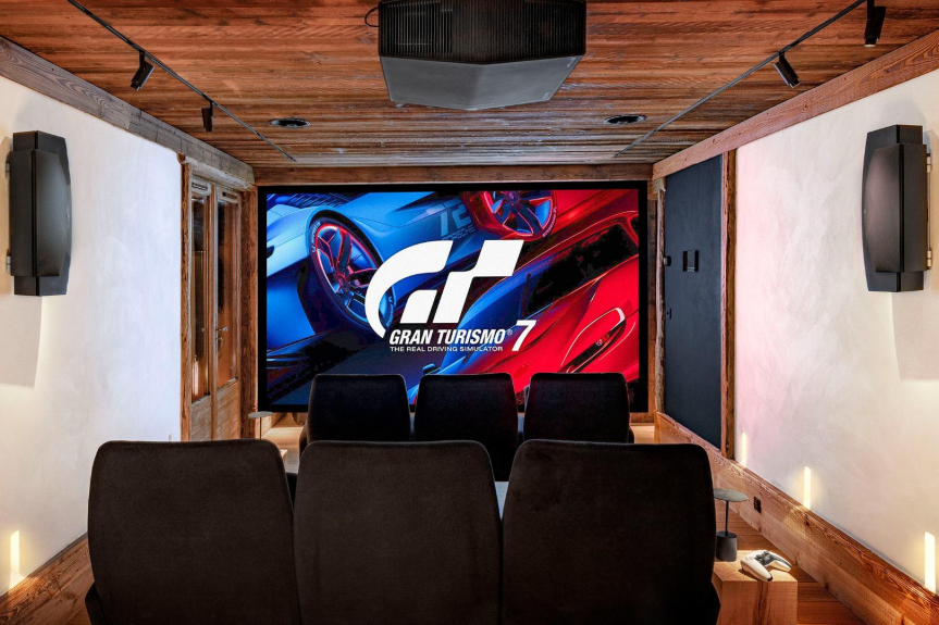Abends oder an Tagen mit schlechtem Wetter können Sie im großen Kinosaal des Chalets über 2000 Filme und Serien anschauen.