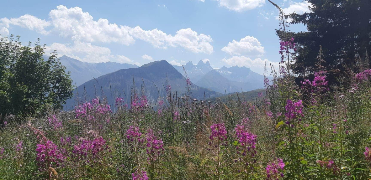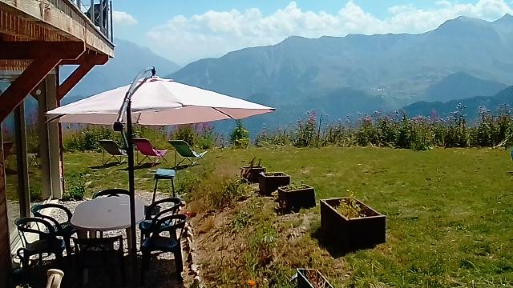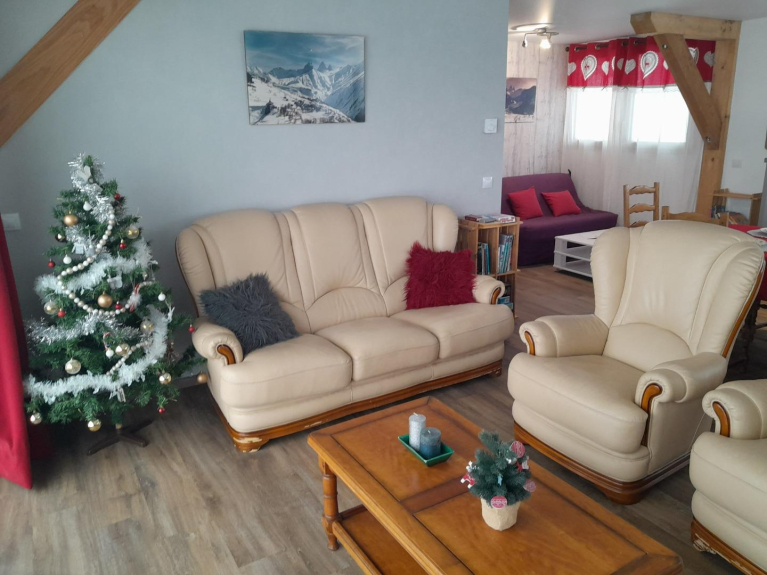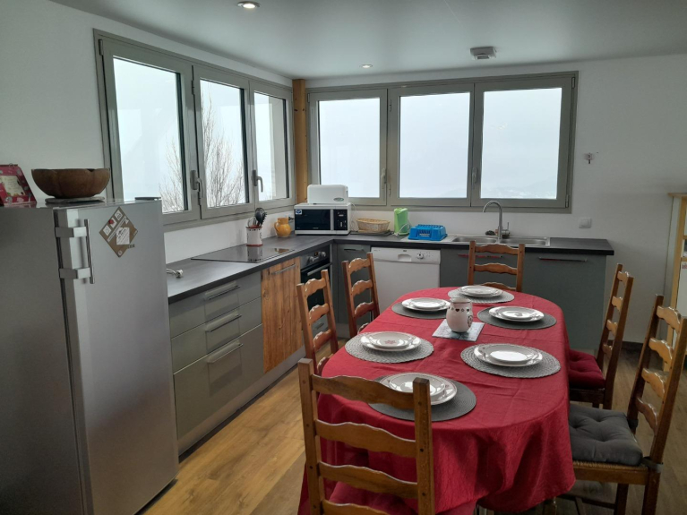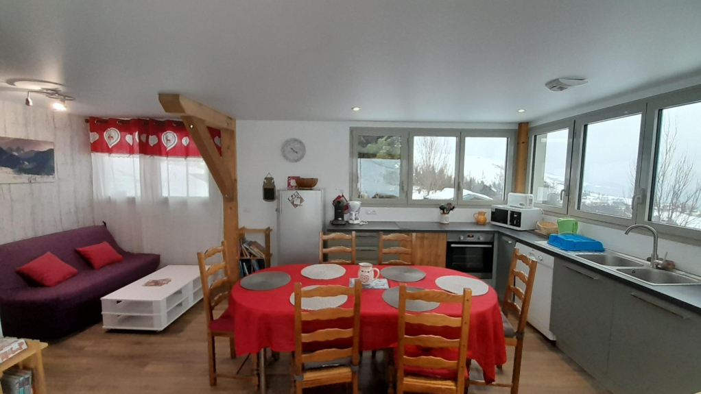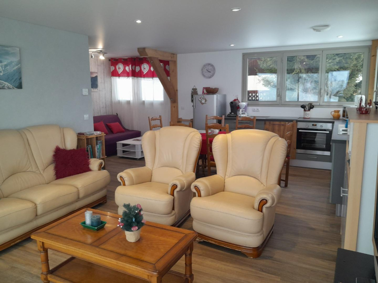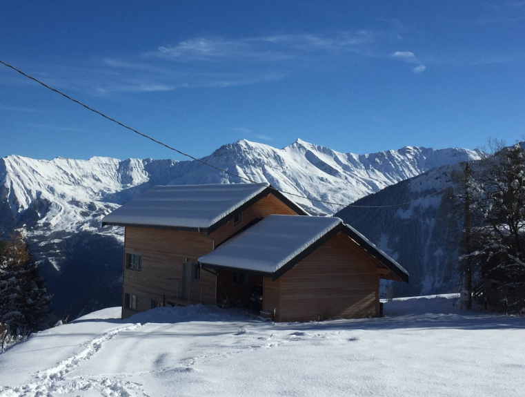 Wohnung auf Gartenebene in einem freistehenden Chalet (Baujahr 2018), ruhige Wohngegend mit Panoramablick auf die Berge (gegenüber den Aiguilles d'Arves).
