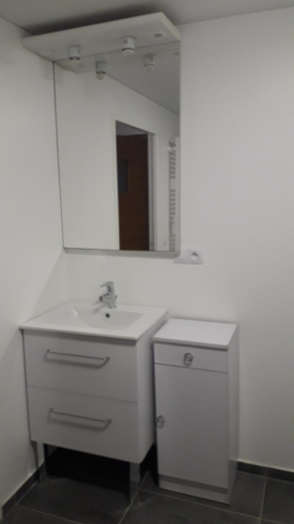 Die Wohnung besteht aus einem Wohnzimmer mit offener Küche und Essbereich, 2 Schlafzimmern, einem Bad mit WC.