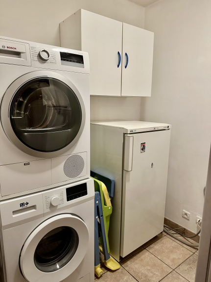 Abstellraum mit Waschmaschine, Wäschetrockner, extra Kühlschrank, Gefrierschrank.