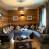 Ein großes Wohn-/Esszimmer mit offener Küche und zentralem Kamin