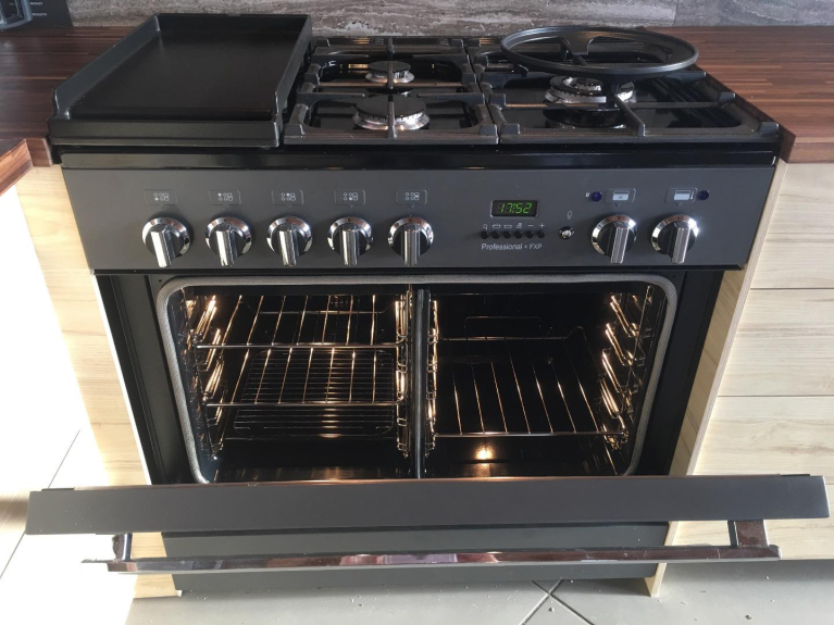 * 1 zum Wohnzimmer hin offene Küche, sehr gut ausgestattet (Falcon 90 Piano mit 5 Gasflammen und XXL-Backofen, 2 Mikrowellen, Geschirrspüler, großer Kühlschrank mit Gefrierfach, Salamander, Cook Expert XL Magimix , 2 Raclettegeräte, 2 Fonduemaschinen, Crêpes, Schnellkochtöpfe, gusseiserne Kasserollen...).
