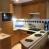 Zum Wohnraum hin offene Einbauküche mit Cerankochfeld, Kombibackofen/Mikrowelle, Geschirrspüler, Kühlschrank mit Gefrierfach und Dunstabzugshaube.
