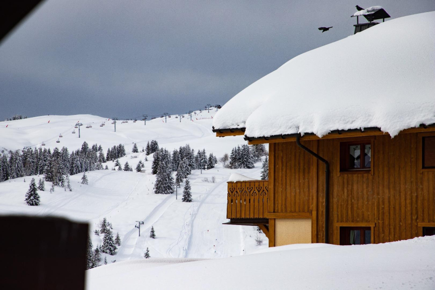 In der Nähe der Pisten, in einem charmanten kollektiven Chalet, Wohnung zu vermieten (2 Schlafzimmer, max 6 Personen), privater Parkplatz.