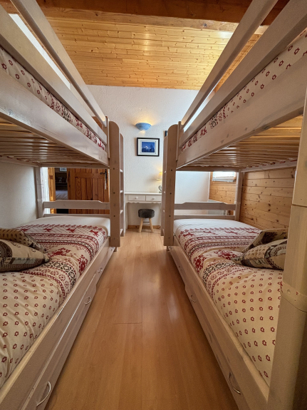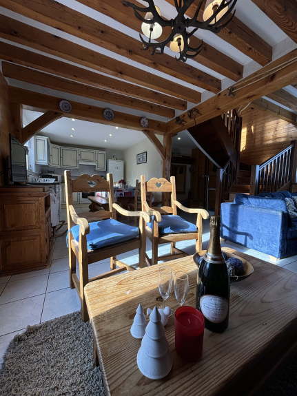 Hochstehendes Chalet auf 3 Ebenen, klassifiziert als Meublé de Tourisme fünf Sterne, im Herzen des Resorts, am Fuße der Pisten, in der Nähe der Geschäfte (Supermarkt, Bäckerei, Skiverleih, Skischule, Kindergarten, Restaurants) gelegen.