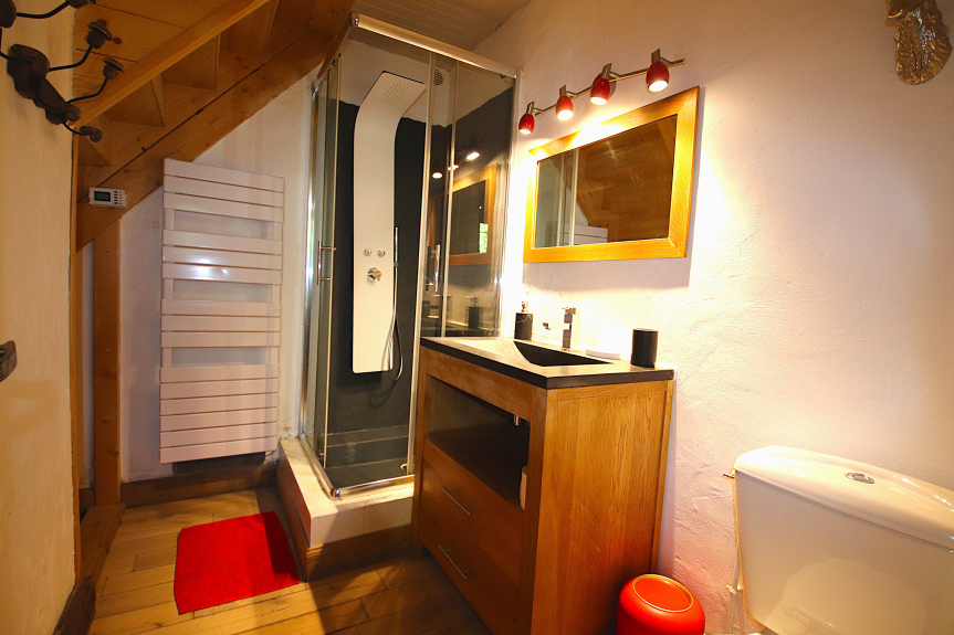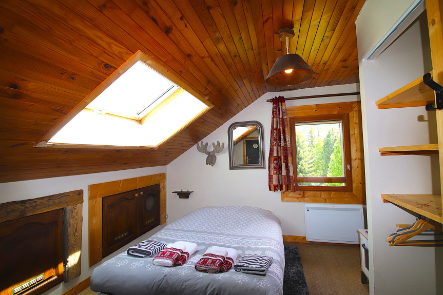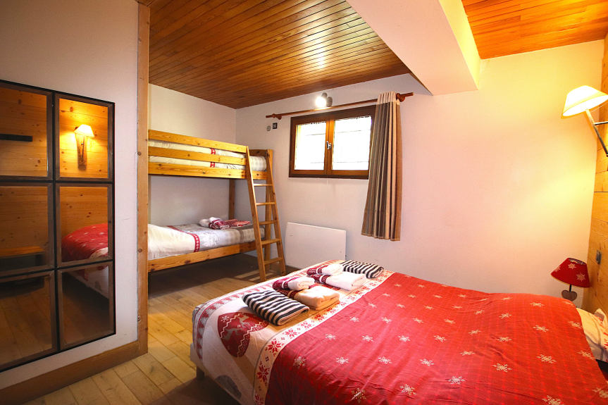 Das Chalet verfügt über 6 Schlafzimmer und 4 Badezimmer, die alle mit einem Kinderbereich ausgestattet sind. Am Eingang des Chalets befindet sich ein Raum zum Abschnallen und Aufbewahren von Skiern und Schuhen. Das Wohnzimmer ist durch einen Kamin vom Esszimmer getrennt, sodass Sie dort eine heiße Schokolade am Feuer genießen und nach dem Skifahren gesellige Stunden verbringen können. Es führt auf eine 25 m² große Südterrasse, auf der Sie im Freien frühstücken können.