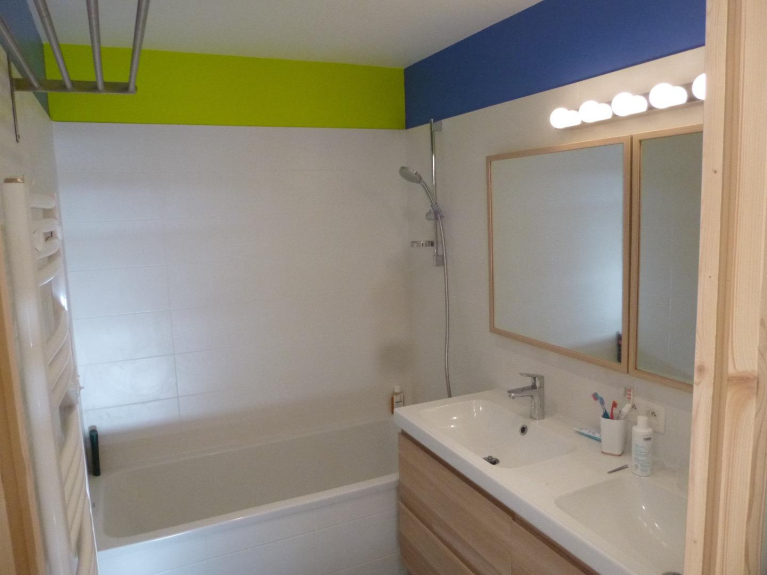 Große Wohnung von 101m2 in einem neuen, typisch savoyardischen Chalet. Gesamte Wohnung mit eigenem Zugang. Gelegen an den sonnigen Südhängen von Samoëns. Mit Blick auf die großen Berge (Criou und Mt. Buet) und das Skigebiet von Samoëns. Zusammensetzung: Großes Wohnzimmer, großer Esstisch, offene Küche mit allen modernen Geräten ausgestattet: Backofen, Induktionskochfeld, Mikrowelle, Geschirrspüler, Kühlschrank, Wasserkocher, Kaffeemaschine, Toaster.