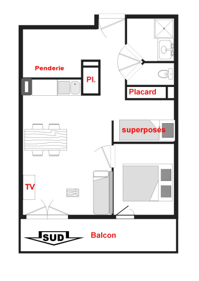 38 m² große Wohnung am Fuße der Pisten von Espace Diamant, ideal für sechs Personen, im ersten Stock der Residenz mit einem Südbalkon, der einen herrlichen Blick auf die Schneefront des Mont Rond bietet.