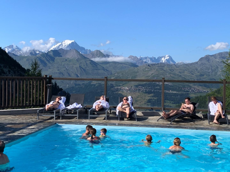 Die Residenz Manoir Savoie ist eine 5-Sterne-Residenz mit einem Empfangsservice, einem Entspannungsbereich (Sauna, Hammam, Fitnessraum) und vor allem einem beheizten Außenschwimmbad mit Blick auf den Mont Blanc.