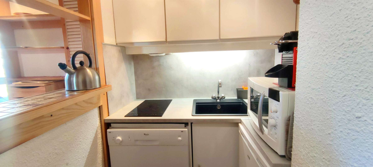 2 Zimmer im Hochparterre in einem Chalet-Gebäude im Herzen des Hameau (Südseite des Resorts), 15 Minuten zu Fuß vom Zentrum des Resorts entfernt.