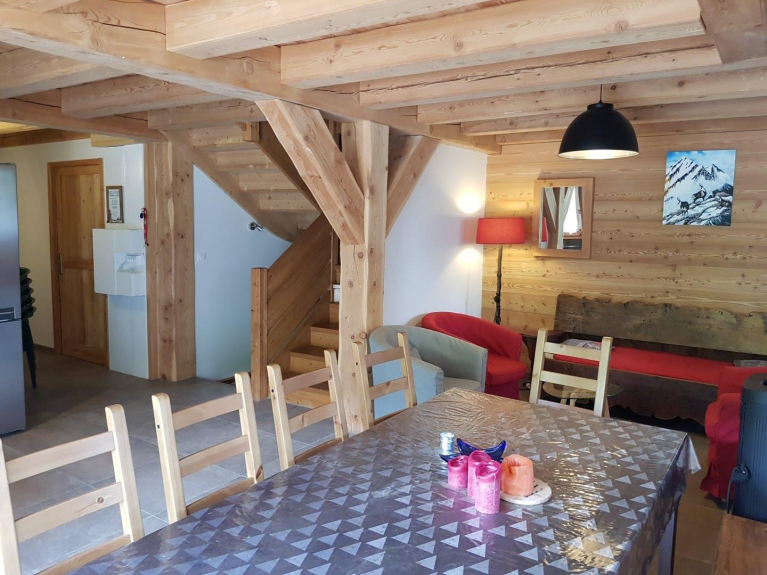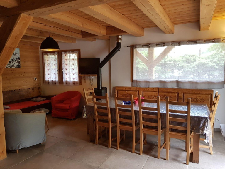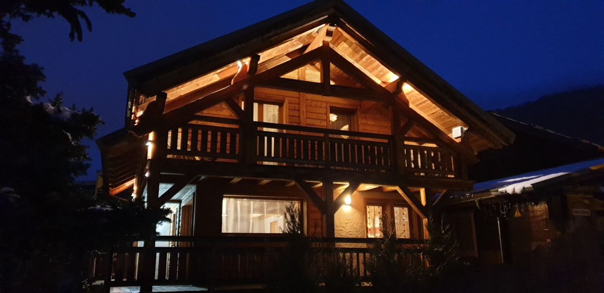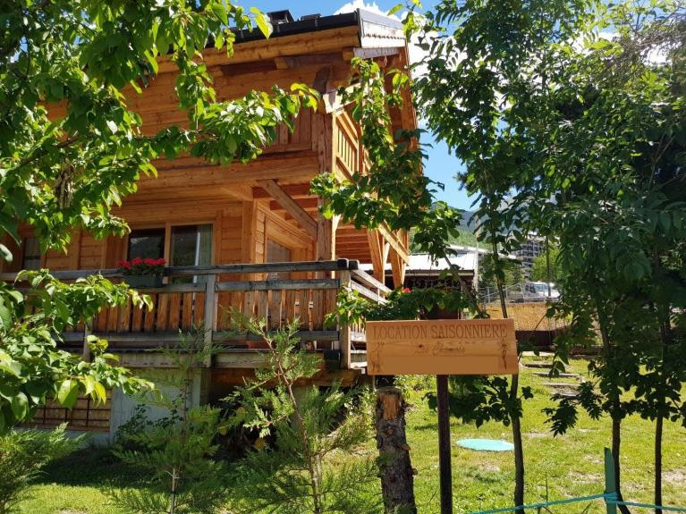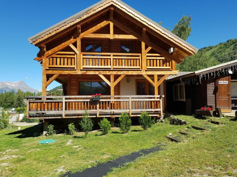 Chalet aus lokalem Lärchenholz mit 5 Schlafzimmern, 1 Badezimmer und 2 Duschen, 3 Toiletten, Sauna, Ski- oder Fahrradraum. im Zentrum des Ferienortes Serre Chevalier Chantemerle. Garten mit Tisch, Stühlen, Sonnenschirm, Grill.