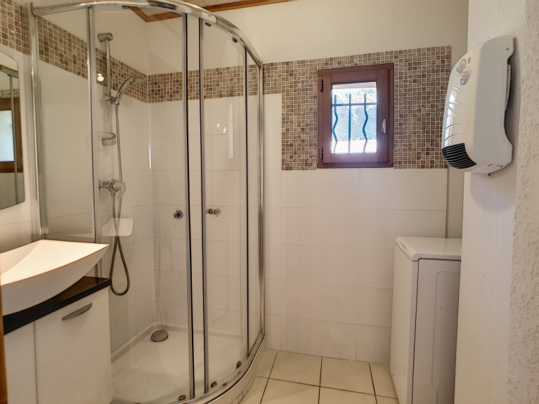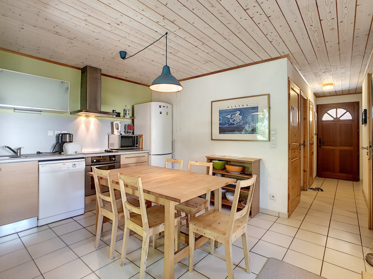 Ausstattung: Geschirrspüler, Backofen, Kühlschrank mit Gefrierfach, Flachbildfernseher, Filterkaffeemaschine, 4-Flammen-Induktionskochfeld, Mikrowelle, Toaster, Wasserkocher, Kaffeemaschine, Waschmaschine, Staubsauger, DVD-Player, Bügelbrett, Fondue-Set, Terrassenmöbel + Grill.