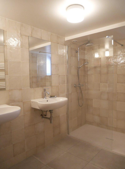 Im Obergeschoss befindet sich ein großes Badezimmer mit einer begehbaren Dusche.