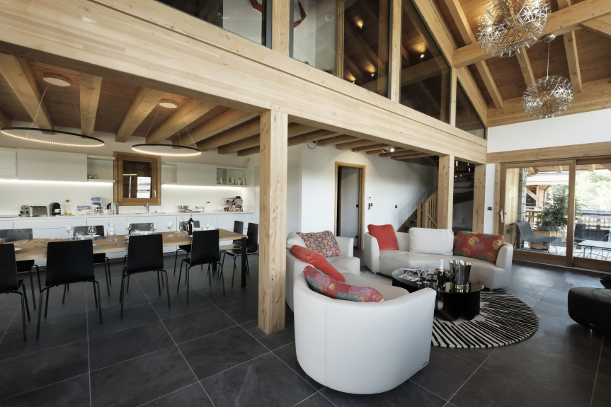 Das Chalet HALEAKALA bietet Ihnen einen Ausflug in den Schnee, die Sonne und die gute Laune. Dieses große Bergchalet (170m²), ideal für ein Familientreffen, ist eine gelungene Mischung aus eleganter, moderner Einrichtung und Bergtradition. Das Chalet liegt direkt an der Piste, die zu den 3 Tälern zurückführt, und bietet mit seinen Schlafzimmern mit eigenem Bad, dem Kamin, dem Spielzimmer und zwei großen Sonnenterrassen eine hervorragende Ausstattung.