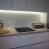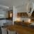 Offene Küche: Geschirrspüler, Backofen, Mikrowelle, Induktionskochfeld, Wasserkocher, Toaster und Kaffeemaschine.