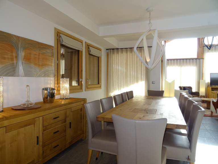 Das Chalet MYRIEL bietet Ihnen einen wirklich komfortablen Skiurlaub. Am Fuße der 3-Täler-Pisten wird alles getan, um Ihnen eine Wellness-Kur zu bieten: Privatsauna, Whirlpool auf Ihrer Gartenterrasse, während Sie das atemberaubende Panorama bewundern, Zimmer mit eigenem Bad und Kamin zur Entspannung. Dieses Chalet bietet Platz für bis zu 12 Personen auf 140 m² und 3 Ebenen.