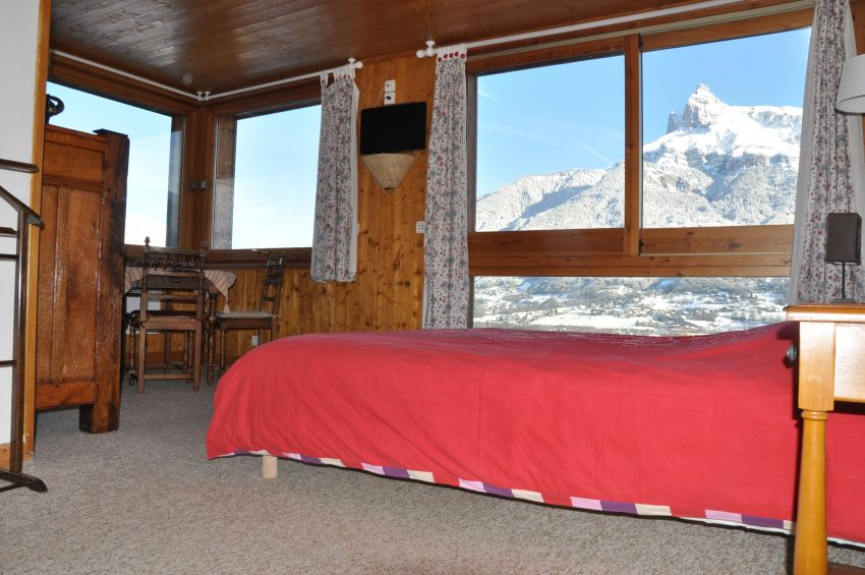 Dieses geräumige Chalet bietet Ihnen viel Komfort und ein außergewöhnliches Panorama auf den Mont Blanc, die Dômes de Miage, die Aravis und die Aiguilles de Varens.