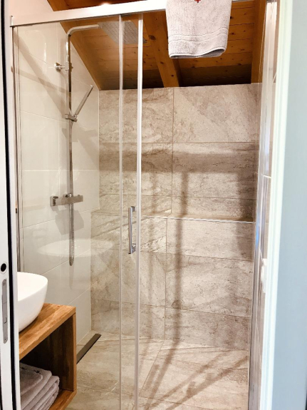 Das Chalet ist 190m2 groß, sehr gut ausgestattet, mit einer Kombination aus Holz und Trockenstein, großem Wohnzimmer mit Kamin, großem Esszimmer/Küche für 10 Personen, vier Schlafzimmern (3 Doppelzimmer und ein Familienzimmer für 4 Personen), 3 Bädern (2 mit italienischen Duschen und eines mit Badewanne), 3 WCs.