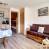 Wohnzimmer: 1 Schlafsofa vom Typ Rapido für 2 Personen. Ausgestattet mit einem Fernseher.