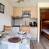 Ausgestattete Küche: Kühlschrank, 2 Induktionskochplatten, Kombibackofen, Geschirrspüler, Toaster, Wasserkocher, Kaffeemaschine.