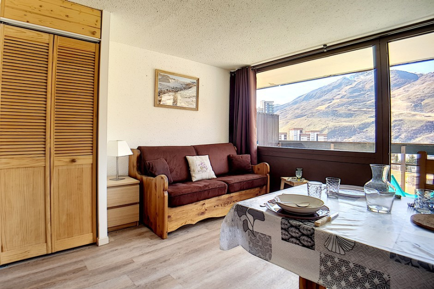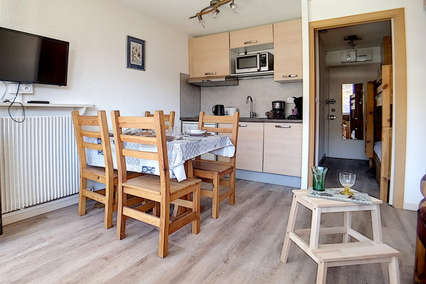 Schönes, komplett renoviertes Studio mit einer Fläche von 20m² für 4 Personen. Es befindet sich im 6. Stock einer Residenz in der Nähe des Skilifts und des ESF-Startpunkts und verfügt über 1 Südbalkon.