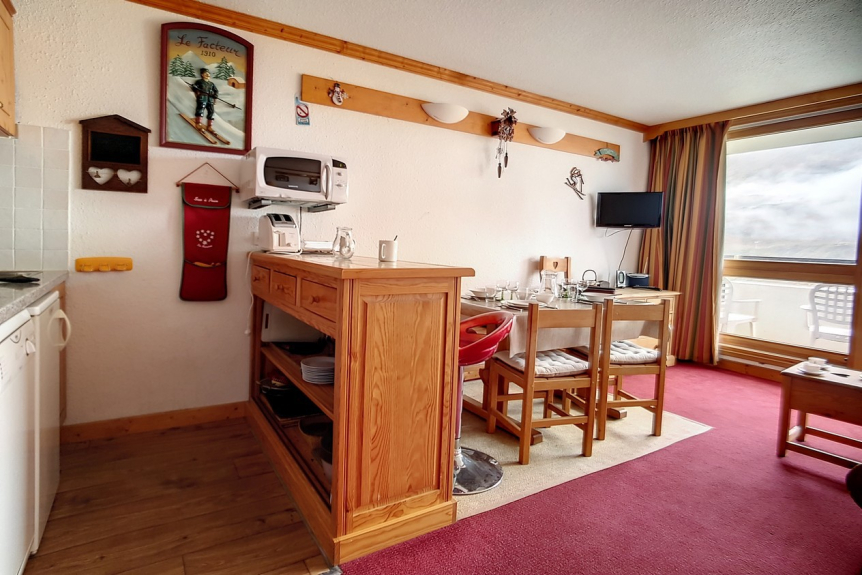 Das Brelin-Gebäude überragt den Ort Les Menuires und liegt oberhalb des Stadtteils La Croisette, der über öffentliche Aufzüge, die rund um die Uhr geöffnet sind, erreicht werden kann.