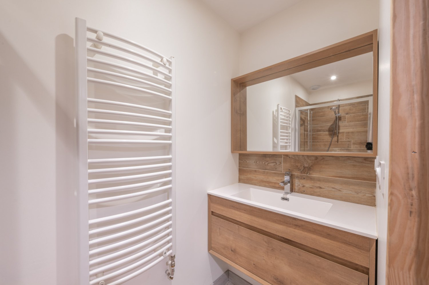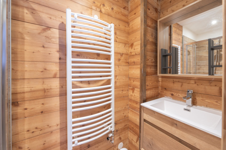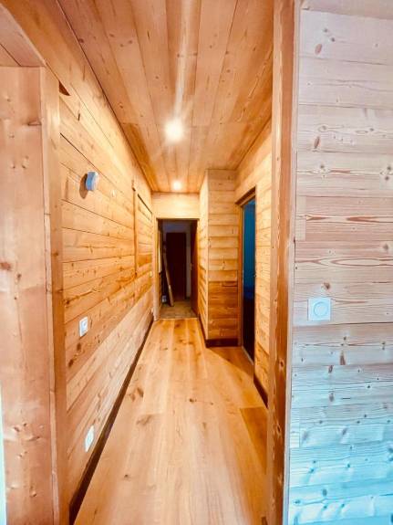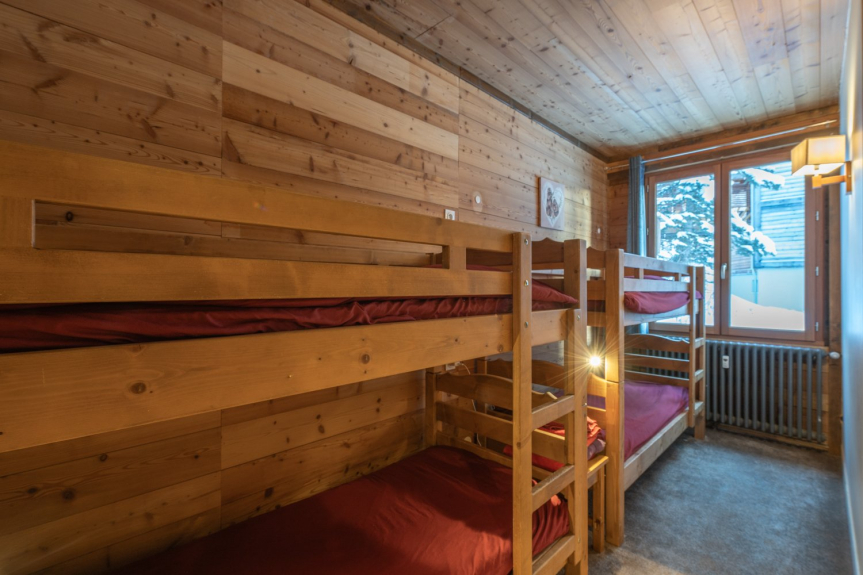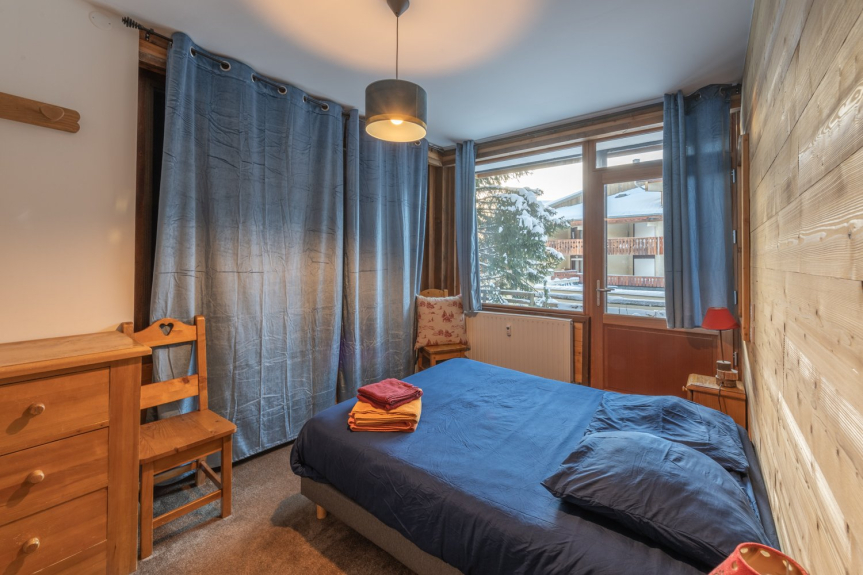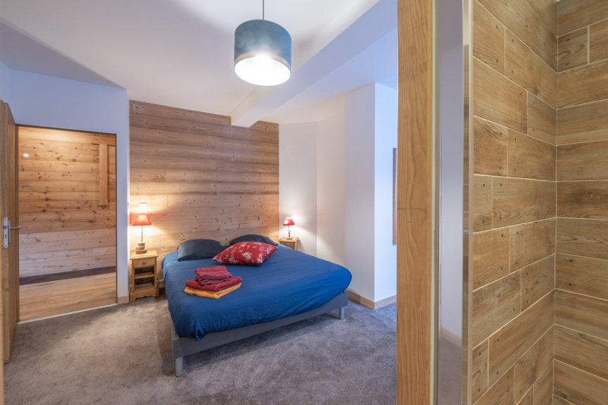 Die Wohnung ist 90 m2 groß und befindet sich im Erdgeschoss des Chalets mit einer Außenterrasse.