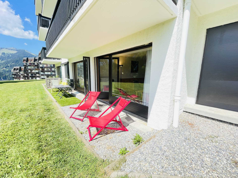 Im Erdgeschoss einer Ski-in/Ski-out Residenz gelegen, werden Sie auch die unmittelbare Nähe zum Dorfzentrum, den Geschäften und Restaurants und die Südlage zu schätzen wissen.