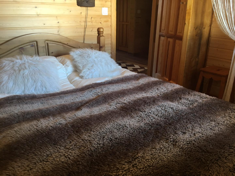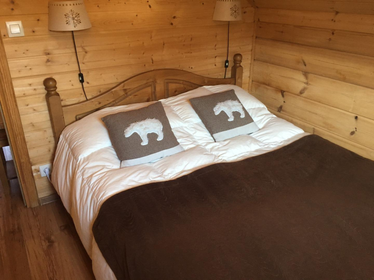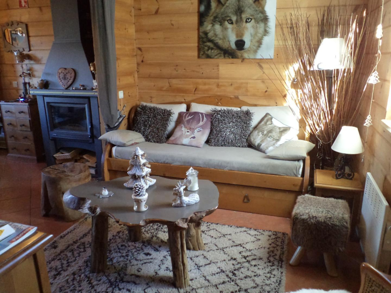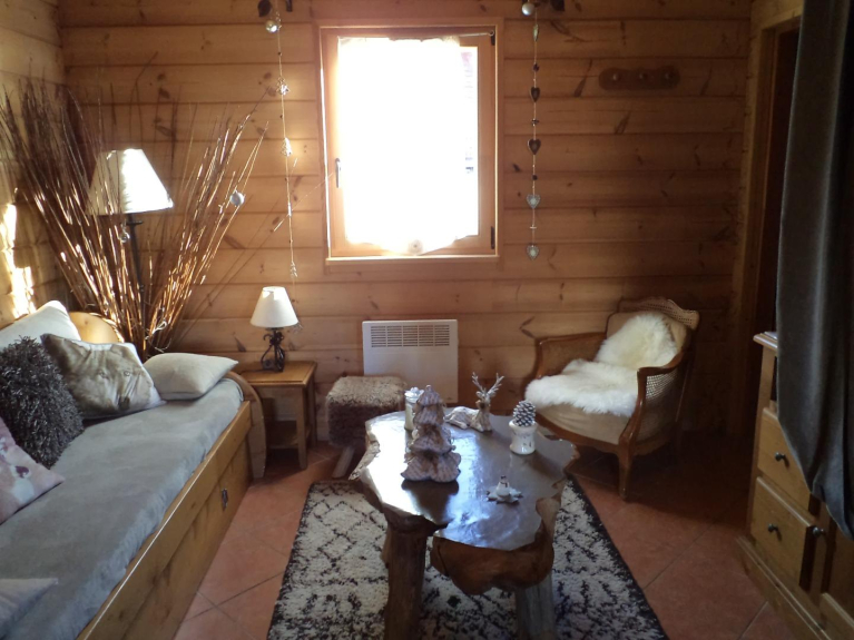 Individuelles Holzchalet, 8 Schlafplätze, tolle Aussicht, ruhig, in der Nähe der Pisten und Geschäfte.