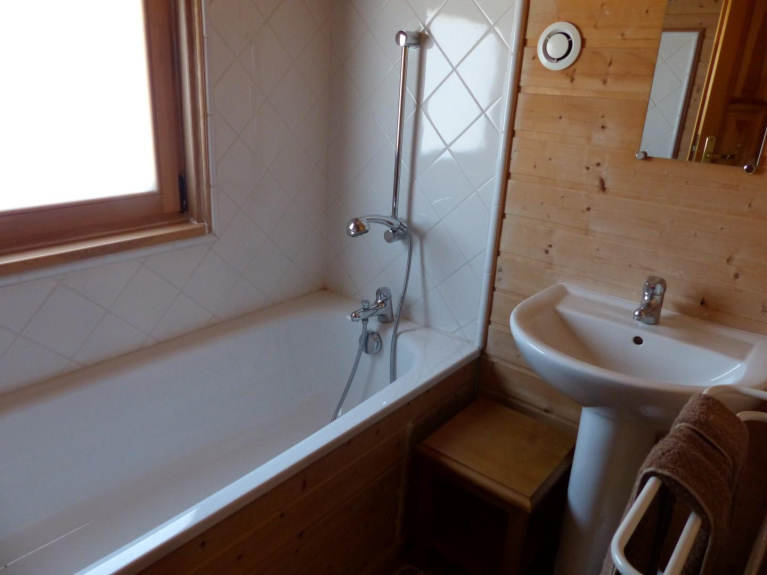 3 Schlafzimmer, 1 Badezimmer, 1 Duschraum, 2 Toiletten, 150 m von den Geschäften und dem Fuß der Pisten entfernt.