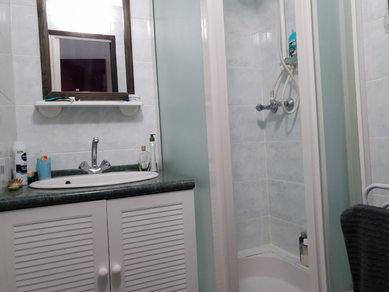 Badezimmer: Dusche und Waschbecken
