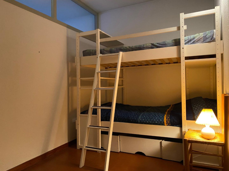Eine geschlossene Bergecke mit 2 Etagenbetten,