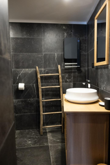 Im ersten Stock befindet sich ein Badezimmer, das dem Schlafzimmer im Erdgeschoss gewidmet ist, sowie ein sehr großes Schlafzimmer mit zwei Paaren von zwei Etagenbetten und zwei Einzelbetten, die zusammengeschoben werden können. Ein großes Badezimmer mit Badewanne, Dusche und WC ist an dieses Zimmer angeschlossen.