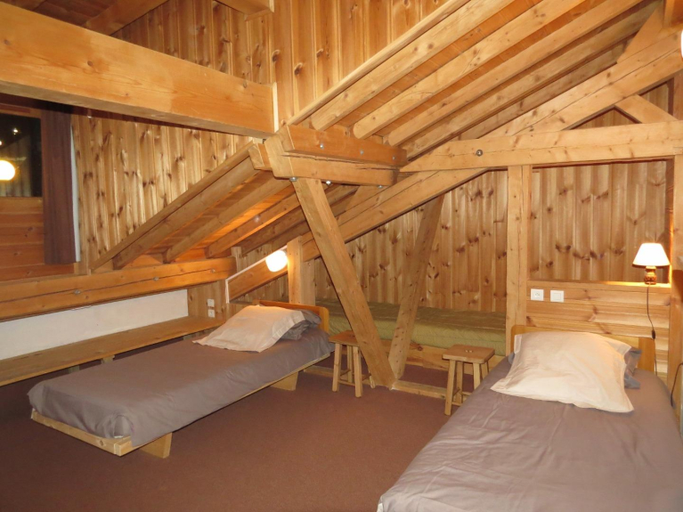 Großes traditionelles Chalet (280 m²), 150 m von den Pisten und dem "Télésiège de La Roche", der Plagne-Aime2000 verbindet, entfernt. 8 Schlafzimmer für 15 Personen und die Möglichkeit eines zusätzlichen Schlafzimmers in der Nähe. Sauna, privates Wifi, Kamin im Erdgeschoss... In jedem Zimmer gibt es ein Bad oder ein Dusch-Waschbecken (mit Haartrockner). Es besteht die Möglichkeit, "Bettwäsche" und "Handtücher" zu mieten.