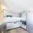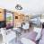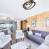 Großes Wohnzimmer/Küche von 35m² mit ausgestatteter Küche: Geschirrspüler, Backofen, Cerankochfeld, Kühlschrank.