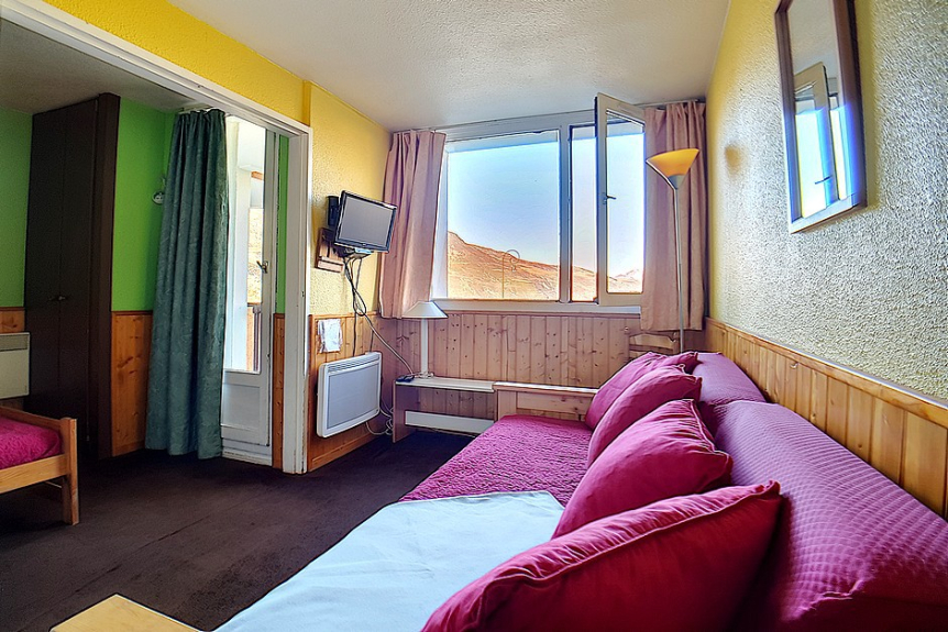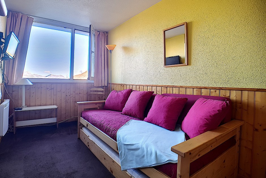 Wohnzimmer: 1 Einzelbett und 1 Ausziehbett. Ausgestattet mit einem Fernseher.