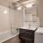Badezimmer mit Badewanne, separatem WC und Waschmaschine.