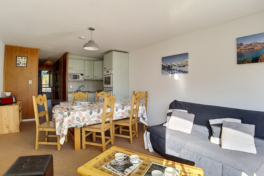 2-Zimmer-Wohnung 40 m² für 6 Personen mit Südbalkon (Schlafzimmer auf der Nordseite). Sie befindet sich im 3. Stock mit Aufzug.